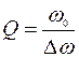 При вынужденных колебаниях осциллятора Q- факторэкспериментально определяется по отношению резонансной частоты ω 0 к ширине резонансного пика по частоте на уровне убывания его высоты в √2 раза (Δω):