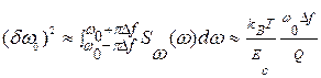 при условии, что Q>>1 и 2πΔf<<ω0/Q дает выражение для минимально детектируемого сдвига по частоте: