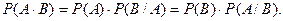 Следствие 1. Пусть событие А не зависит от события В (Р(А)=Р(А/В)).