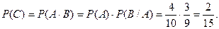 Вероятность произведения событий А · В (или вероятность их одновременного осуществления) равна произведению вероятности одного из них на условную вероятность другого события, вычисленную в предположении, что первое событие произошло.