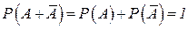 1. Полная группа событий (ПГНС – такая группа А1, А2,..., Аn событий, что в результате испытания одно и только одно из этих событий обязательно произойдет, события А1, А2,..., Аn попарно несовместны).Тогда событие А1 + А2 +...+ Аn – достоверное событие и его вероятность Р(А1 + А2 +... + Аn) = 1, или, учитывая несовместность событий, имеем Р (А1 + А2 +... + Аn) = Р (А1) + + Р (А2) +... + Р (Аn) = 1. Следовательно, сумма вероятностей событий, образующих ПГНС, равна единице, т.е.