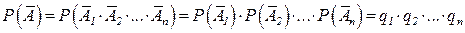 3. Вероятность осуществления хотя бы одного из независимых событий А1, А2,..., Аn.
