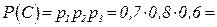 Пример: Студент разыскивает формулу в трех справочниках. Вероятность обнаружить нужную формулу в первом справочнике р1 = 0,7; во втором р2 = 0,8; в третьем р3 = 0,6.