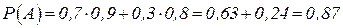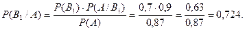 По условию задачи Р(В1) = 0,7; Р(В2) = 0,3;