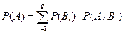 Обобщение. Если интересующее нас событие А может произойти только в результате осуществления одного из несовместных событий В1, В2,..., Вn, составляющих ПГНС, то вероятность события А равна сумме парных произведений вероятностей событий В1, В2,..., Вn, называемых гипотезами или предположениями, на соответствующие условные вероятности события А: