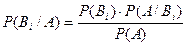 Пусть событие А может произойти в результате осуществления одной из гипотез В1, В2,..., Вn, составляющих ПГНС. Пусть событие А произошло. Пересчитаем вероятность i-той гипотезы в этом случае, т.е. найдем РА(Вi).