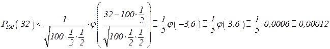 Пример Монета брошена 100 раз. Найти вероятность того, что герб появится 32 раза.