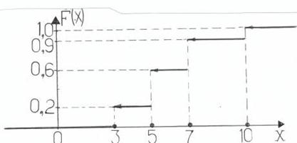 является исчерпывающей характеристикой как непрерывных, так и дискретных случайных венличин. Вид функции распределения для дискретной случайной величины, заданной своим рядом распредкеления (см. таб. выше), приведен на рис. 3. В отличии от функции распределения непрерывной случайной величины, график которой – всегда непрерывная кривая (см. рис. 2), график функции распределения дискретной случайной величины имеет «ступенчатый» характер, каждая «ступенька» соответствует своему возможному её значению, а её «высота» равна вероятности появления зтого значения.