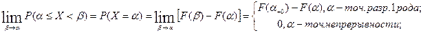 функция распределения имеет разрыв 1 рода (дискретная случайная величина), то предел равен значению скачка функции F(x) в точке х=