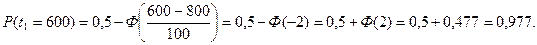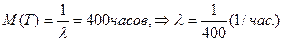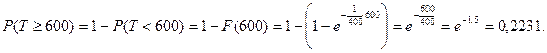 Пример1. Случайная величина Т – время работы до отказа мощной осветительной лампы – имеет показательное распределение. Определить вероятность того, что лампа проработает не менее 600 часов, если известно, что среднее время работы ламп такого типа равно 400 часов.