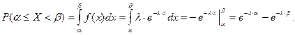 Вероятность попадания с. в. Х, распределённой по показательному закону, на заданный промежуток