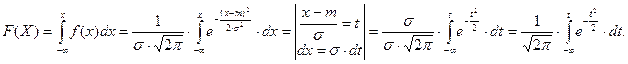 Для вычисления значения функции распределения F(х) через табулированный интеграл вероятности используют равенство:
