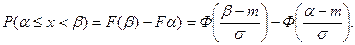 Вероятность нормально распределённой случайной величины принимать свои значения, принадлежащие интервалу