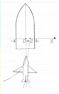 Пример 2. Самолёт совершает боевой разворот для выхода на курс судна. Далее он производит обстрел судна неуправляемыми ракетами, выпускаемыми из контейнера, неподвижно закреплённого под самолётом. Ширина судна – 8 метров, при этом полёт самолёта – вдоль оси судна, прицеливание – по оси судна. Вследствие боевого разворота самолёт имеет боковое скольжение, приводящее к систематической ошибке в попадании ракеты на 2 метра вправо по отношению к направлению пуска. Рассеивание неуправляемых ракет (это их техническая характеристика) в боковом направлении характеризуется величиной с.к.о.