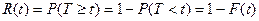 Если функция распределения случайной величины Т имеет вид F(t), то функция надёжности получает выражение:
