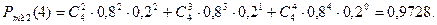 5.1 В мастерской имеется 4 мотора. При существующем режиме работы вероятность того, что мотор работает с полной нагрузкой, равна 0,8. найти вероятность того, что в данный момент не менее двух моторов работает с полной нагрузкой. (