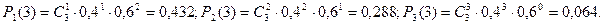 Определим вероятности одной, двух и трёх опасных перегрузок в серии из трёх опытов (вероятности гипотез Н1, Н2, Н3 соответственно).