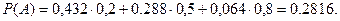 Р(А) = Р(Н1)Р(А/Н1) + Р(Н2)Р(А/Н2) +Р(Н3)Р(А/H3) = 0,279.