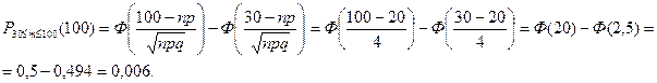 5.8 Вероятность выхода из строя за время Т одного конденсатора рапвна 0,2. определить вероятность того, что из 100 конденсаторов в течение времени Т выйдет из строя не менее 30 конденсаторов.
