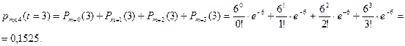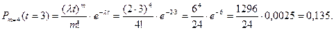 5.10 Среднее число вызовов, поступающих в справочное бюро вокзала за одну минуту, равно двум. Найти вероятность того, за три минуты поступит: а) четыре вызова; б) менее четырёх вызовов; в) не менее четырёх вызовов.