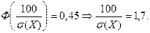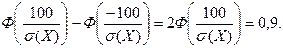 P(-100 < M(X) <100) = F(100) – F(-100), здесь М(Х) =0 – точное расстояние до цели. Тогда: