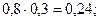 3) вероятность того, что в мишени будет одна пробоина; 4) вероятность того, что мишень будет поражена. (1) 0,42; 2) 0,12; 3) 0,46; 4) 0,88.)