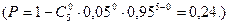 3.12 Улов из 500 рыб подвергают выборочному контролю. Весь улов считается не пригодным, если из пяти прверенных рыб хотя бы одна окажется бракованной. Какова вероятность того, что данный улов не будет принят, если он содержит 5% недобракачественной рыбы?