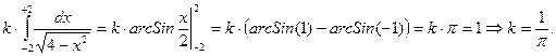 вне его функция равна нулю. При каком к функция будет плотностью распределения вероятностей некоторой случайной величины X? Найти функцию распределения F(x). Определить вероятность того, что с. в. Х примет значение, не меньше (-1), но не больше 1.