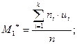 – объём выборки (число наблюдений) (см. таблица 2); ni – частоты; ti – варианта.