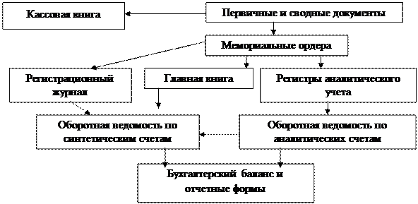 Мемориально-ордерная форма имеет некоторые достоинства. Так, эта форма сравнительно проста по своей структуре. Взаимосвязь между регистрами устанавливается легко. Техника учетных записей несложна и быстра. Благодаря этому в первые годы своего существования эта форма имела преимущества по сравнению с прежними формами счетоводства. Она решила такие важнейшие проблемы бухгалтерской техники, как уменьшение громоздкости аналитического учета и устранение его отставания от учета синтетического. Таким образом, мемориально-ордерная форма учета предусматривает составление регистров мемориальных ордеров, оформляемых на группу документов и содержащих сведения о бухгалтерской проводке, дате ее составления и сумме. Мемориальные ордера в хронологическом порядке записываются в регистрационный журнал, где им присваиваются порядковые номера. Итоги мемориальных ордеров переносятся в журнал – Главную книгу. Итоги оборотов дебета и кредита по счетам из журнала – Главной книги переносятся в оборотную ведомость синтетических счетов, которая используется для составления баланса. Аналитический учет ведется в аналитических регистрах – книгах и карточках.
