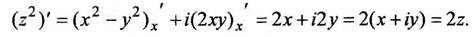 Для аналитических функций правила дифференцирования и таблица производных элементарных функций комплексной переменной такие же, как для функций действительной переменной, что иллюстрирует следующий пример. Пример 3, Проверить выполнение условий Коши-Римана для функции