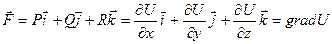 3) Потенциальное поле является полем градиента некоторой скалярной функции U(x,y,z), т.е. если