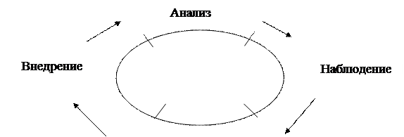 Четвертый: анализ. На этом этапе руководитель анализирует результаты внедрения, накапливает опыт для следующего этапа: наблюдения.