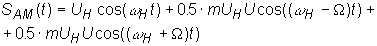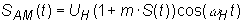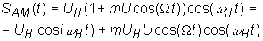 Наиболее просто описывается математически (и реализуется практически) амплитудная модуляция. Рассмотрим АМ на примере, когда роль несущей играет высокочастотное гармоническое колебание