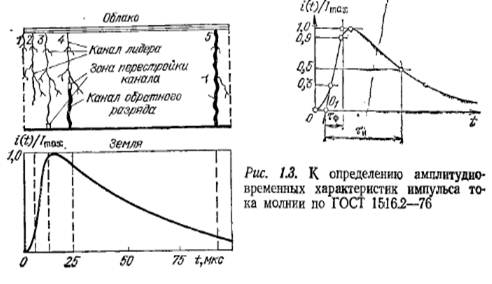 Таким образом, опасными параметрами тока молнии являются его максимальное значение крутизна, удельная энергия и заряд.