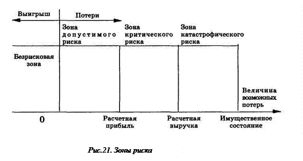 В зависимости от величины потерь возникающих в процессе производства и реализации продукции могут быть выделены зоны риска (рис.21).