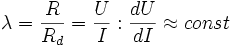 Один из основных параметров варистора — коэффициент нелинейности λ — определяется отношением его статического сопротивления R к динамическому сопротивлению Rd: