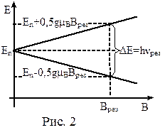 ЭПР – это явление резкого возрастания поглощения энергии электромагнитного излучения резонансной частоты νрез. системой парамагнитных частиц, помещённой в постоянное магнитное поле. Такие частицы обладают неспаренными электронами, а значит и нескомпенсированным магнитным моментом атома (например, свободные радикалы). Будучи помещёнными в постоянное магнитное поле, такие атомы испытывают расщепление энергетических уровней (рис.2). Переходы между уровнями соответствуют микроволновому диапазону электромагнитного излучения.