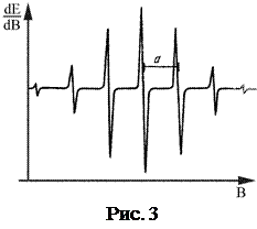 Спектром ЭПР называют зависимость энергии E, поглощённой исследуемым веществом, от величины индукции B магнитного поля (рис.3). Если в структуре электронных оболочек атомов неспаренные электроны отсутствуют, то для исследования таких веществ используют спин-метки и спин-зонды, обладающие такими электронами. Эти соединения вводят в изучаемую структуру в процессе химического синтеза. В качестве спин-меток и спин-зондов используют соединения, представляющие собой различные нитроксильные радикалы (