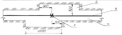 Для сварки потолочных стыков устраивается приямок 2 глубиной 600 мм от низа трубы (рис. 8).