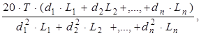 где Dу - внутренний диаметр газопровода, мм; Т - продолжительность испытания, ч; d1, d2, d3 - внутренние диаметры труб на участках газопроводов, мм; L1, L2. Ln - длины участков газопроводов, соответствующие диаметрам, м.