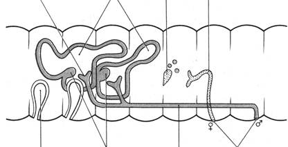 Рисунок 5 – Система органов размножения дождевого червя (вид сбоку)