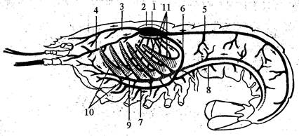 Рисунок 2 – Кровеносная система речного рака (вид сбоку)