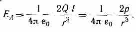 Вектор Е B имеет направление, противоположное электрическому моменту диполя (вектор р направлен от отрицательного заряда к положительному).