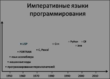 ¨ – ромбиками обозначен набор функциональных языков, среди которых такие языки как: LISP, появившийся еще в 60-ые годы, и более современные языки: Haskell, OCaml и уже упомянутый язык F#.