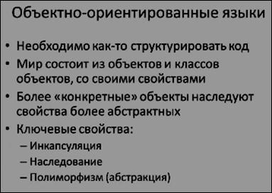 ° – кружочками обозначен набор объектно-ориентированных языков;