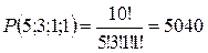 Пример. Пакет акций состоит из акций четырех типов: 5 акций типа A, 3 акции типа B и по одной акции типов C и D. Сколькими способами можно распродать этот пакет, продавая по одной акции ежедневно?