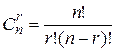 Неупорядоченная (n,r) - выборка без повторений называется сочетанием из n элементов по r и обозначаются