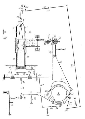 Рис. 108. Кинематическая схема механизма открывания зажимов в агрегате БКО