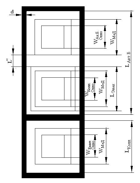 При расчете поперечных размеров эмиттер и контактное окно к нему полагаем квадратным. Принципы, использованные при расчете продольных размеров, справедливы и для поперечных. Размеры, указанные на рисунках, приведены в мкм.
